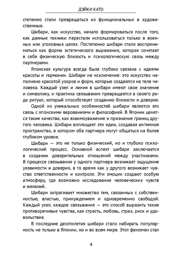 Перед вами поистине уникальная книга. Она представляет собой наиболее полный комплексный обзор практики шибари - древнего японского искусства связывания, которое сочетает в себе эстетику, эмоции и глубокую психологическую связь с партнером. Это исследование проведет вас через все аспекты практики: от ее исторических корней до современного применения, от основ безопасности и согласия до возможностей, которыми шибай может обогатить ваши отношения.