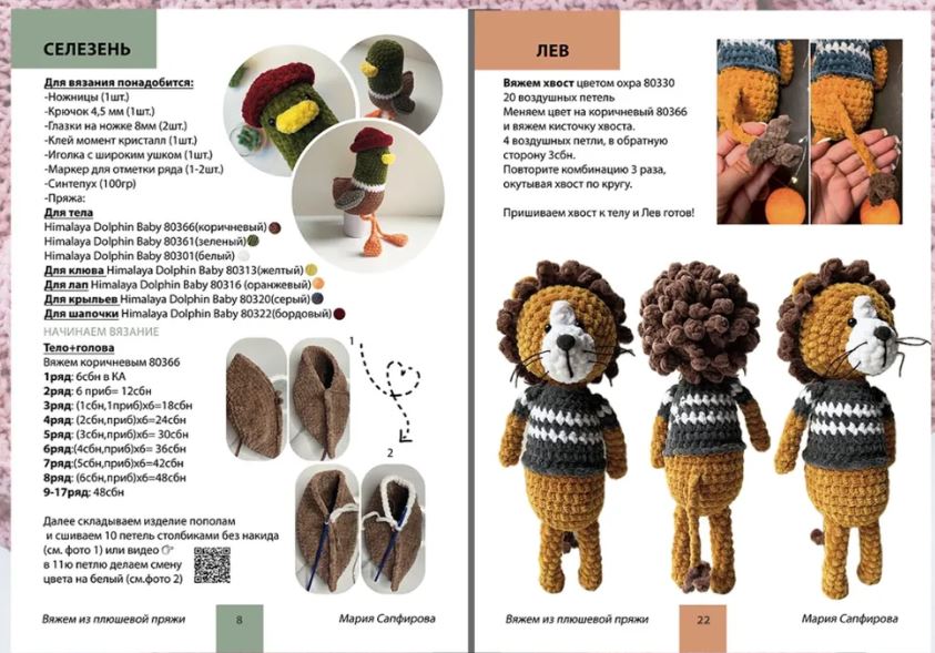Автор Сапфирова Мария Год выпуска 2023 Количество страниц 28 О книге Мини-книга «Вяжем из плюшевой пряжи» - это совершенно новый формат. Никакой «воды», только понятные и подробные описания по вязанию игрушек из плюшевой пряжи крючком, сопровождается видео мастер-классом и фотографиями. Если у вас не открывается или не проигрывается видео, включите vpn, пожалуйста. Благодаря компактному формату книгу удобно взять с собой, она станет прекрасным дополнением вашего досуга. Автор книги, Мария Сапфирова - блоггер, научивший основам вязания тысячи детей и взрослых. Благодаря этой книге вы свяжете 7 потрясающих игрушек, которые станут любимцами ваших детей, родных, друзей.Вяжите с удовольствием!