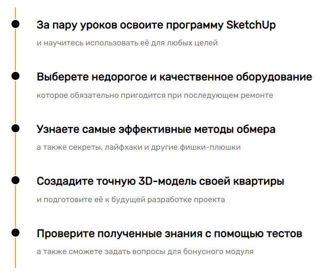 Самое главное при разработке проекта — это правильный замер, потому что цена ошибки в 2 сантиметра, особенно в санузлах — это полная переделка на сотни тысяч рублей и длительностью в пару месяцев. Этот курс научит вас замерять квартиру без ошибок и даст старт к самостоятельной разработке проекта.